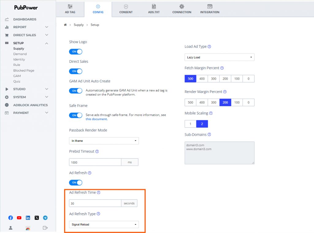 Do not refresh ads blindly every 30 seconds. That ruins your viewability and drives down your CPM. Instead, use “smart refresh” or “signal reload” on Pubower.